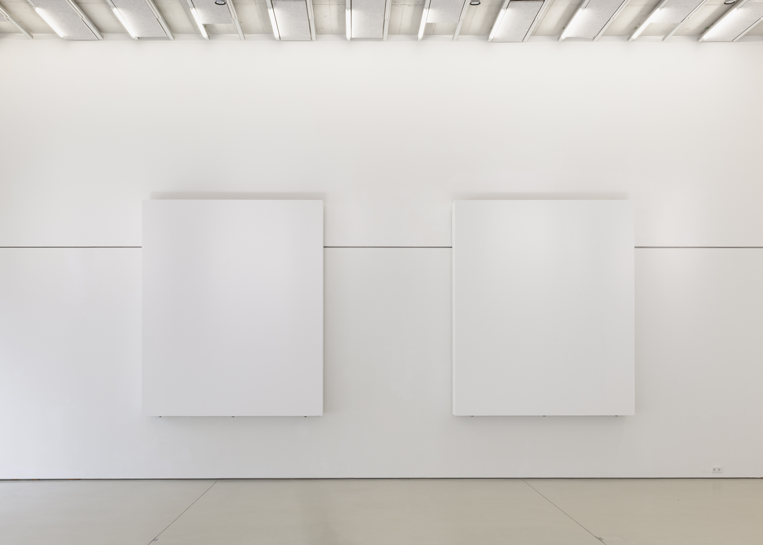 Two monumentally-sized partition walls hang on the gallery’s northern wall, making up the entirety of what is, in a traditional sense, shown. Yet, for a show as reduced as Landschaftsmalerei, the visual and phenomenological impact feels like an institutional-critique gut-punch. One that does not dwell on guilt-tripping the same institutions it questions, but, instead, feels precisely prescient because of how much agency a simple, though physically demanding, gesture is inscribed with. What the conceptually based collective achieves is critique by projection, instead of the intellectual run-around that is institutional-critique’s “show and tell” approach. atelier /// do the inverse: they question the nature of what is deemed worth looking at in a museal context by presenting the wall not as a finite abjection of concrete, wood, or plaster but as the essential auteur for whatever happens in front of it.