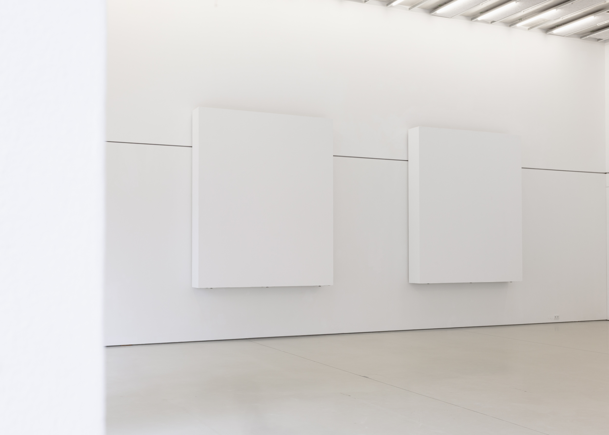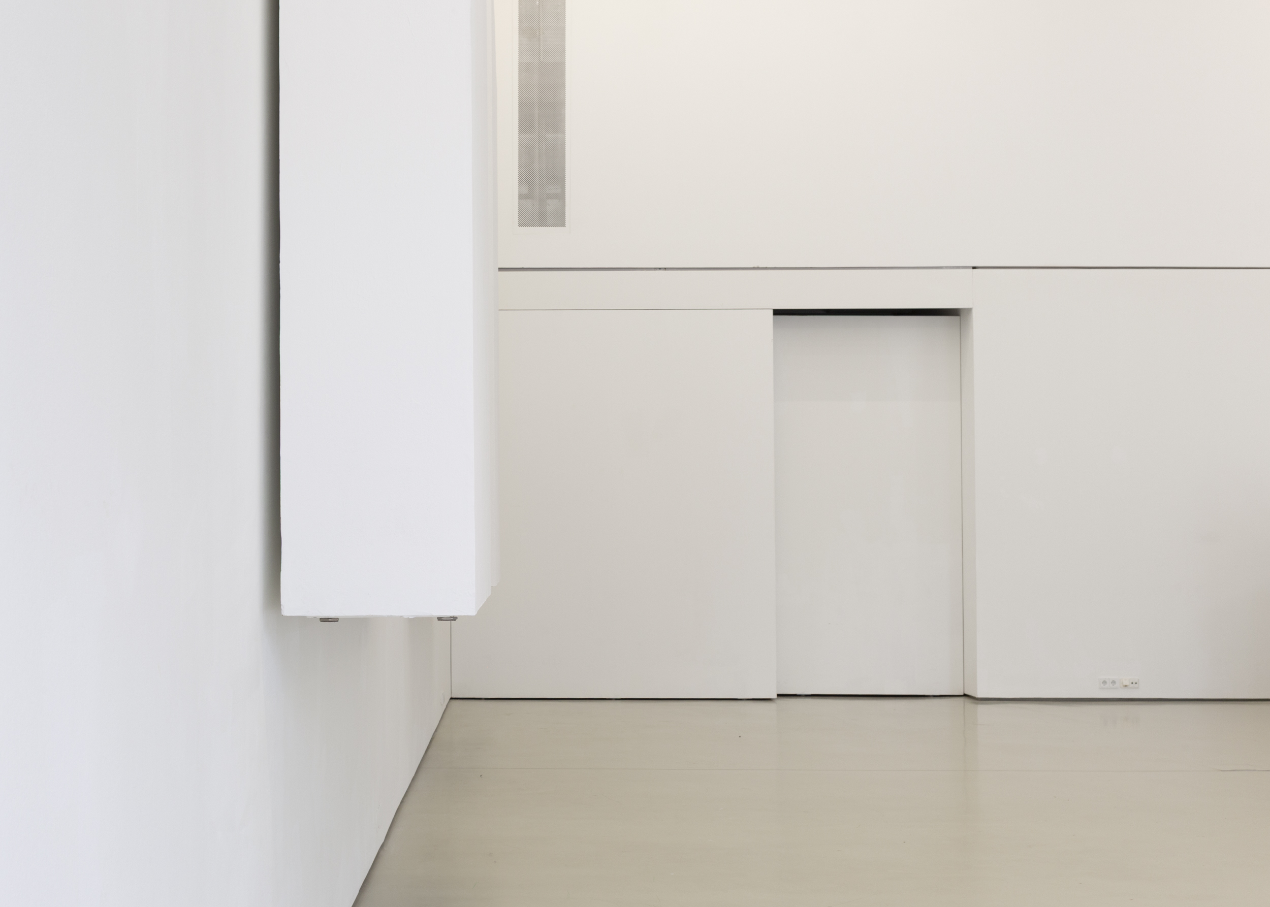 The white walls installed at Stadtgalerie Lehen distantly echo Robert Rauschenberg’s White Paintings (1951), which, regarded by John Cage as a kind of “silent prayer”, become objects of profound contemplation instead of remaining a given. While the neutrality of the white paint they are coated in might falsely suggest some kind of ambivalence, their sheer size and weight remind us of the exact opposite, of the specificity involved with installing a wall on a wall. The physical and logistical effort it takes to install something that, visually, acts like a blank canvas. If painter Adrian Ghenie feels exhausted and depressed after two to three months of painting non-stop – as if he were the only one tortured by the creative act – I’d like to talk to him after having installed two walls that weigh about 400 kilograms each. Questions of size, weight, depth, and transportation – questions that are, inherently, important for all types of artistic production – suddenly become amplified to deafening frequencies. This sets the act of installation into a conversation about functionality, form, spatiality, and the earth’s gravitational pull. The “landscape” in the show’s title is neither representation nor figuration: it is an idea about what the word can mean, about the landscape of a room and the psycho-geography that conceptual art, when done well, can expand on.