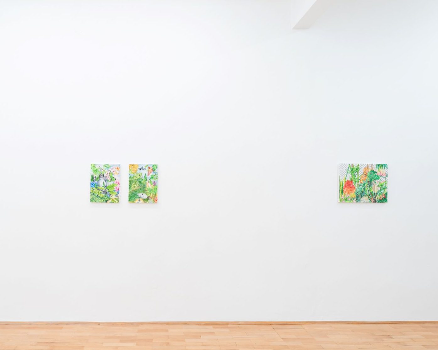 Von feministischen Performances über florale Installationen bis hin zu detailreichen Malereien erstreckt sich ihr Œuvre. Immer wieder kehrt sie zur Frage zurück, was „Natur“ bedeutet und wie sie durch menschliches Eingreifen geformt wird. Binder spricht von der Natur als „Protagonistin“, die über sich selbst Geschichten erzählen kann und übt sich so, dem konstruierten Naturmodell eine eigene Stimme zuzuordnen. In EARTH MAKERS bleibt diese Rolle jedoch ambivalent. Zu glatt und reguliert erscheint die Flora, um autonom oder gestalterisch aufzutreten. Gerade darin liegt das Spannungsfeld der Arbeiten. Während die Künstlerin selbst in den Hintergrund rückt, fungieren ihre Werke als Träger von Forschung, Diskurs und Reflexion. „Es ist Kunst, die eine Erklärung braucht“, betont Galeristin Vonier.