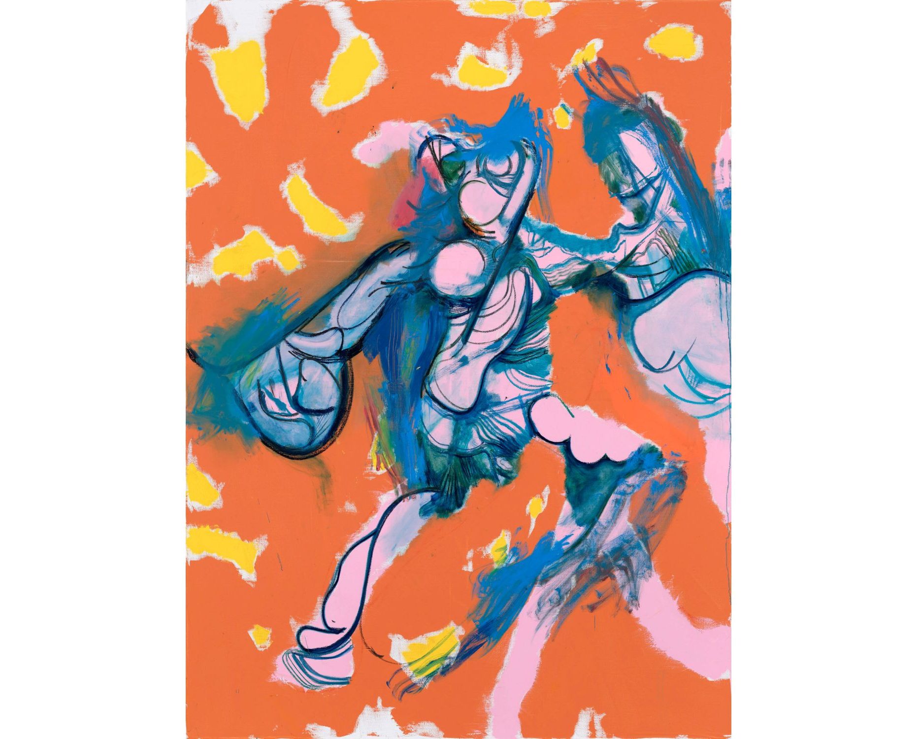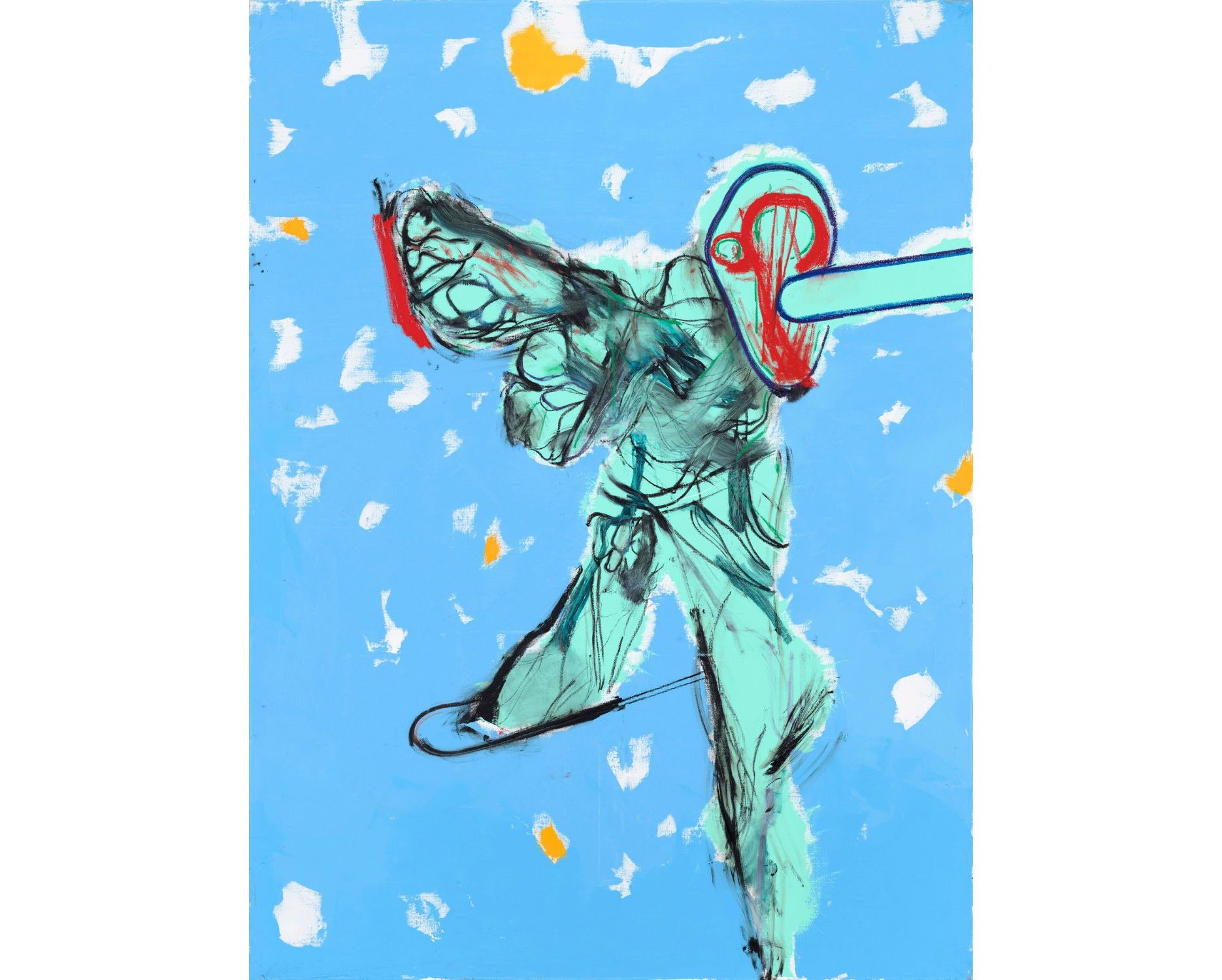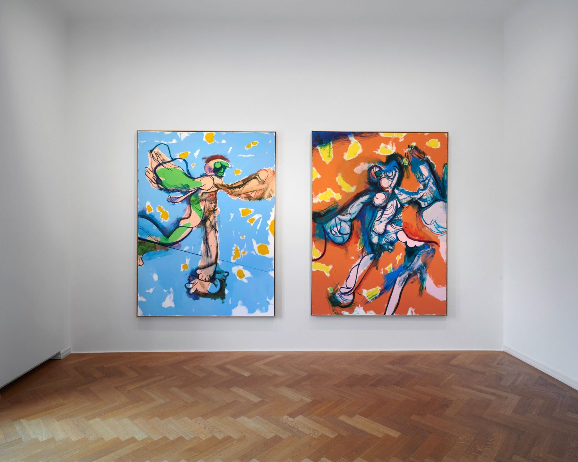 These paintings will not cure world hunger, and they might also not revolutionize the forthcoming historicity of painting, but they are visually striking, and perhaps that is exactly the point they want to reach. In fact, even if the suggested dismemberment of the figure, prevalent in works such as Witreid (2025), might sound violent, these are actually joyous paintings, and the recent documentary on the artist (2023’s “Daniel Richter” by Pepe Danquart) only proves this point, given the way he is seen working: Andy-Stott tracks at full volume, parrots flying around and bright, contrasting colours. Who would not have fun working like that? Beyond this, these newer paintings seem to exist in the liminal space between the aforementioned deformed figures of the likes of Bacon, Freud, and Keith Cunningham, and the figurative attempts of the Jungen Wilden and auteurs like Baselitz, Fetting, and Hödicke, culminating in a series of works (like Mit Elben in denselben (2025)) that end up acting like half a déjà vu, where one is able to pinpoint possible references, but the suggested reality is still a completely different one entirely.