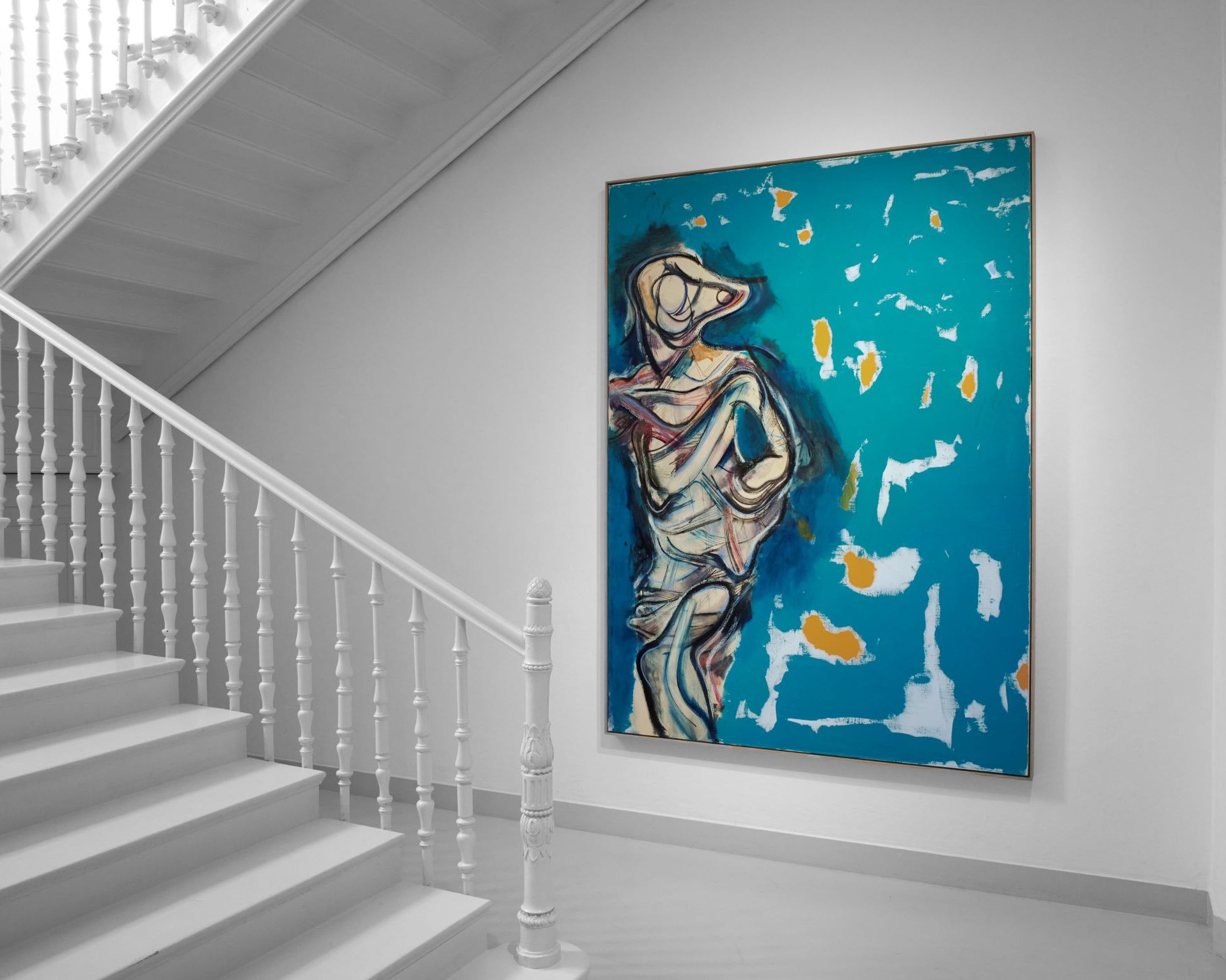 Even while this new production by Richter is perhaps not the most innovative, bordering on having hit a plateau and now just rehashing past styles, they work because they never reveal themselves fully, giving the inquisitive audience a chance to lose themselves in each possible limb, gesture or gesticulation. They also, thankfully, still retain a sense of relationship to the body of the onlooker, not dwelling in the overtly macho mentality of “the bigger, the better”. For how furtive each figure seems to appear (or disappear), the paintings presented at Villa Kast echo moments of stillness and contemplation, tapping into the “kitsch” of brightly contrasted and highly saturated paintings only to have a laugh at themselves in the first place.