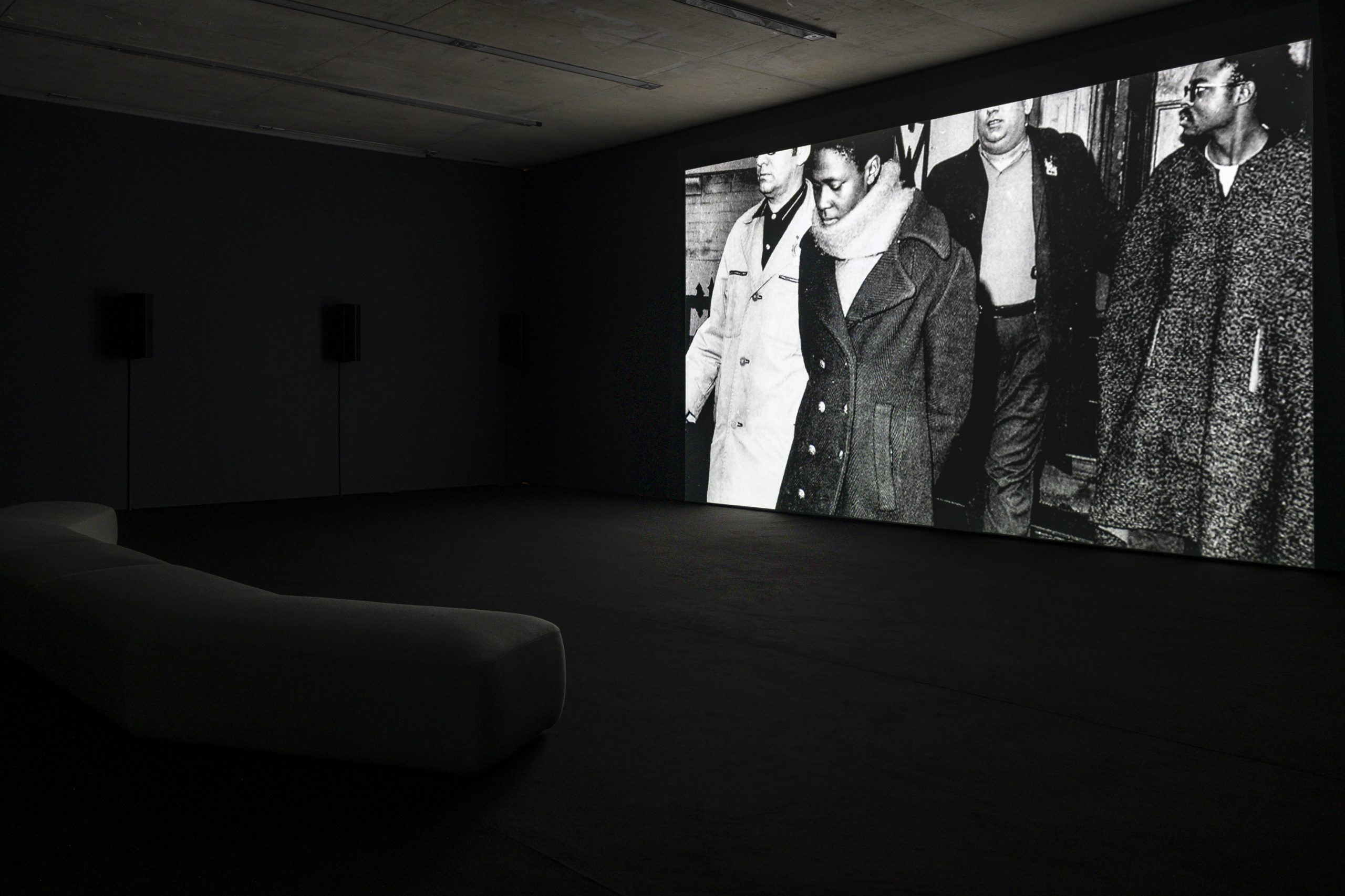Dieses Prinzip wird schon beim ersten Betreten der Ausstellung deutlich: Dunkelheit, flackernde Projektionen und ein pulsierender Sound. Arthur Jafas Arbeit SloPEX (2022) zieht sofort in den Bann. In schneller Abfolge gleiten Schwarz-Weiß-Bilder über die Wand. Der Rhythmus ist überwältigend, fast hypnotisch. Die Videoinstallation verzichtet auf eine lineare Erzählung, sie setzt ganz auf die emotionale Wucht der Bilder: Szenen mit besonderer Assoziationskraft, die an die Geschichte Schwarzen Lebens zwischen Gewalt, Widerstand und Selbstbehauptung erinnern.